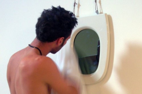 Дальше — больше. Заменили крышку унитаза? Старая крышка будет неплохо смотреться на стене в ванной, превратившись в рамку для зеркала.