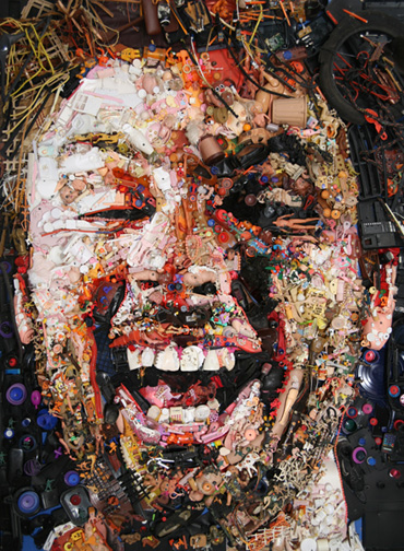 Бернард Пратц создает свои инсталляции и скульптуры из тряпок, посуды, сломанных игрушек. Если смотреть на них вблизи, можно увидеть лишь кучу хлама, но стоит отойти на несколько шагов назад, и взору откроются портреты мировых знаменитостей, скульптуры героев комиксов, морские пейзажи и даже копия статуи свободы — все из мусора.